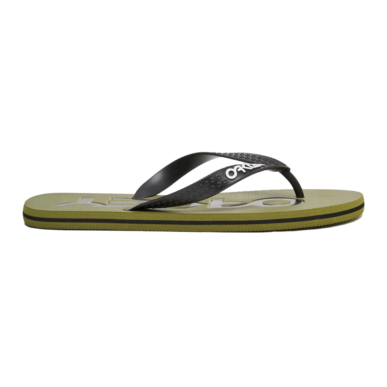 Deze slipper is afkomstig uit de College Flip Flop serie van het merk Oakley. Het materiaal van deze slipper bestaat uit 100% PVC met een zool van 100% polyethyleen. Deze slipper is ideaal voor op warme dagen aan het strand of bij het zwembad door het mooie design en het uitstekende comfort. Het dempende voetbed zorgt ervoor dat u ongehinderd urenlang kunt lopen en daarnaast is de slipper voorzien van een waterbestendig bovenwerk.